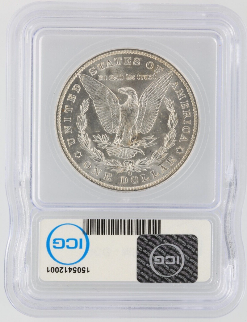 This 1884-O Morgan Dollar is a rare find for any coin collector. With its uncirculated state and MS 65 grade, this coin is sure to be a valuable addition to any collection. The coin is composed of 0.9 fineness silver and has a business strike type.